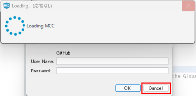”Cancel”を左クリックすると、上記の①画面に遷移