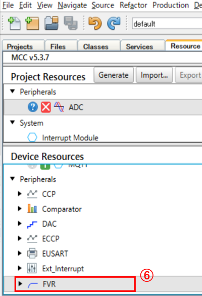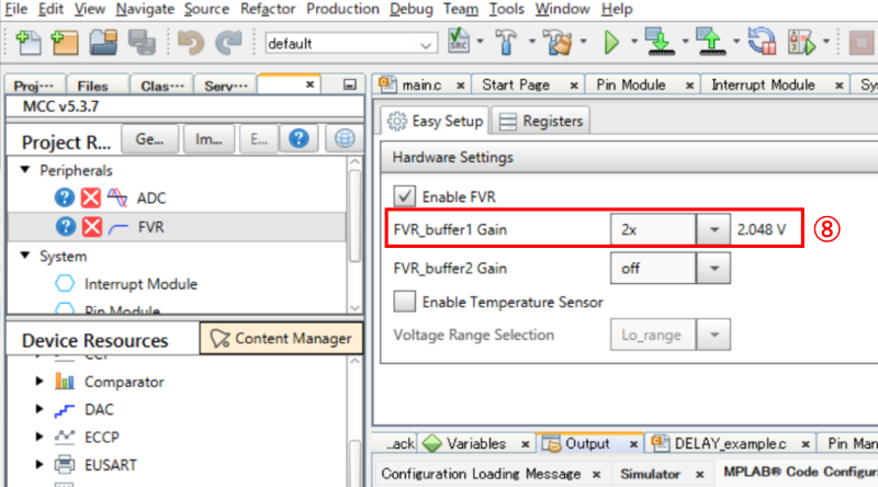 ⑧:[Enable FVR] “レ” 点、[FVR_buffer1 Gain] “2x” (2.048V)を選択