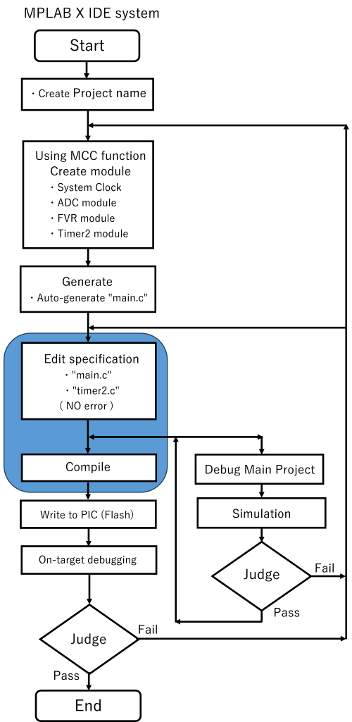 ”図1:ソフト設計作業フローチャート”の”Debug Main Project” 以降部のフローとなります。
