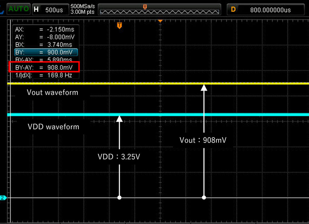 測定時の波形:29.1℃時のVout波形とVDD波形を下記に示します。